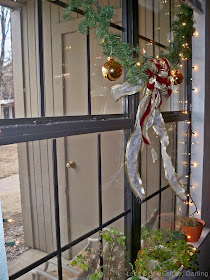 Then if you sit on the couch, you'll probably look out the window to the pretty pond outside with all the mallard ducks swimming about, and you'll see the pretty bow and garland hanging with cheer!